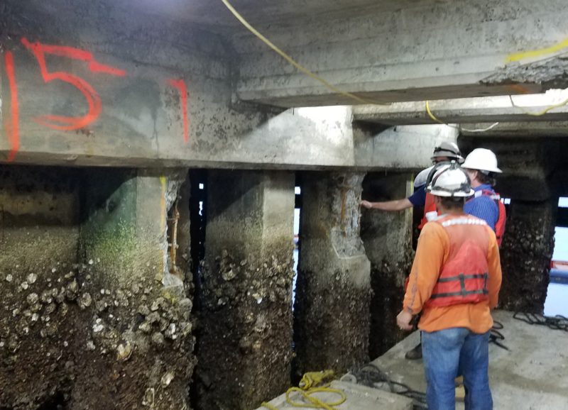 Marathon Construction provided design-build services to NAVFAC SW for concrete repairs to Pier 6. Marathon performed all existing condition survey and design work, followed implementation of recommended repairs. Due to the utility trenches on either side of the Pier, work was coordinated with the low tides requiring constant schedule changes to remain most effective. Additionally, the Pier remained operations during repair work. Approximately 1,200 CF of concrete repairs were made to piling, utility trenches and pile caps.
