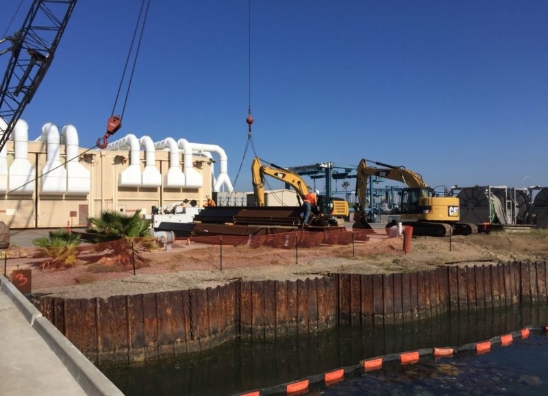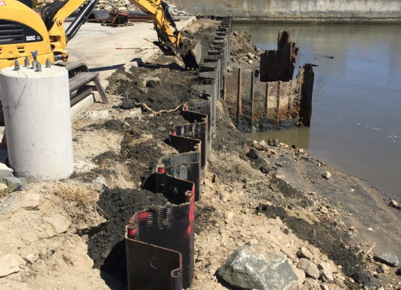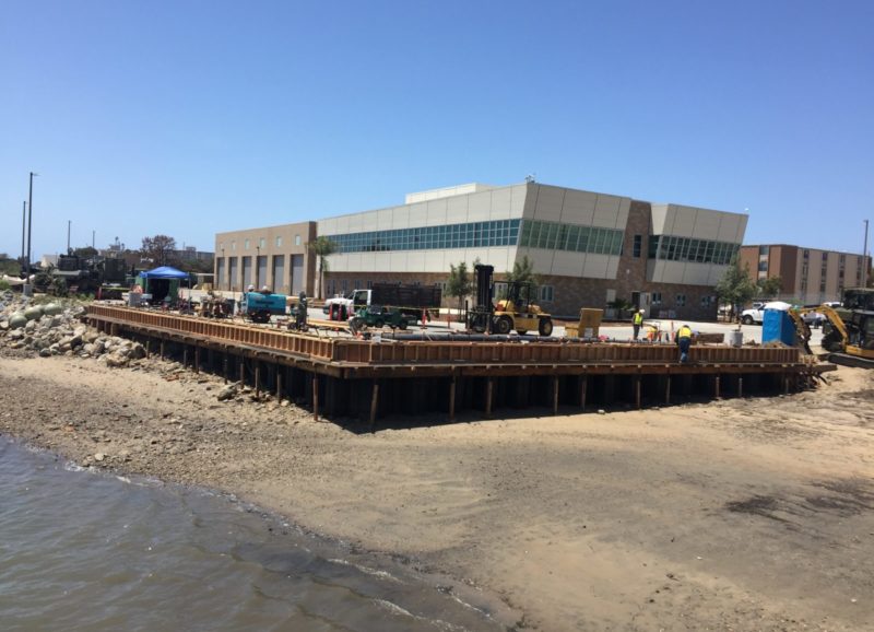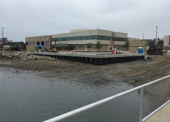 Repair existing Bulkheads 1, 2, and 3 at Naval Amphibious Base, Coronado, including repair of concrete spalling and cracking along the pile caps and mooring foundations, replacement of deteriorated sections of steel cellular sheet pile at Bulkhead. Approximately 170 linear feet (ft) of sheet pile along the eastern section will be replaced bay ward of the existing bulkhead. Approximately 135 linear feet of sheet pile was replaced landward of the existing bulkhead wall to compensate for the fill associated with the eastern section relocation. The existing bulkhead and soil in front of the new bulkhead wall on the western section was removed and new bulkhead walls were built.