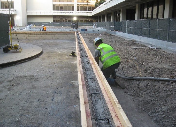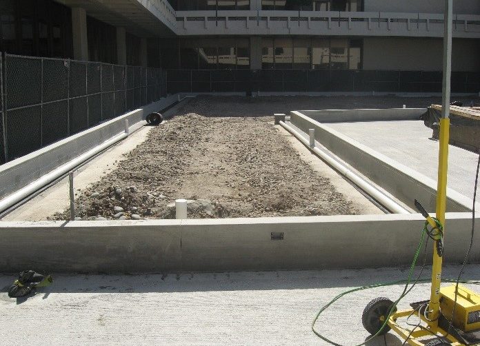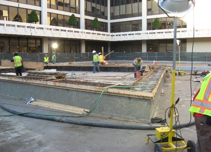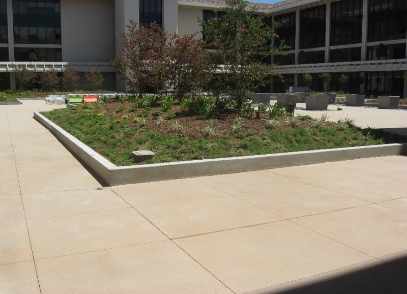 This project was comprised of a partial remodel of General Office Building #1 courtyard, including demolition of all existing plant materials, construction and installation of all new concrete planters with waterproofing, new lightweight soil backfill at planters, new planting and irrigation, new planter drainage, as well as repair and seal of existing tile paving and provide and install necessary anchorage for new canopy shade structure at café.