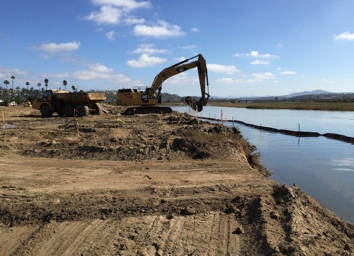The overall goal of this project was to implement the Habitat Restoration Plan for the Del Mar Fairgrounds South Overflow Lot-Phase II to a fully functioning, tidally influenced wetland area. The South Overflow Parking Lot is situated along the northern bank of the San Dieguito River, south of the Del Mar fairgrounds and consists of approximately 11.18 acres, which is the remaining portion of the lot bounded by the San Dieguito River Park Joint Powers Authority’s Coast to Crest Trail boardwalk and Jimmy Durante Blvd. Habitat restoration work included grading, irrigation installation and planting.