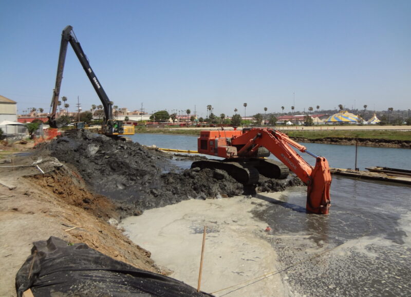 The Restoration of the Tidal Wetlands Revetment Project for Southern California Edison (SCE) was part of SCE’s overall restoration effort of the San Dieguito Lagoon. The goal of the project was to remove existing shoreline debris, including concrete, steel rail pile and trash, and install a new engineered revetment section, with planting and a trail surface. The project was challenging due to limited access and laydown area, working in an active tidal zone while maintain water quality standards and the presence of property owners and businesses adjacent to the project site. Approximately 75 steel rail pile were extracted, with 12,000 CY of excavation and 8,000 ton of rock placed.