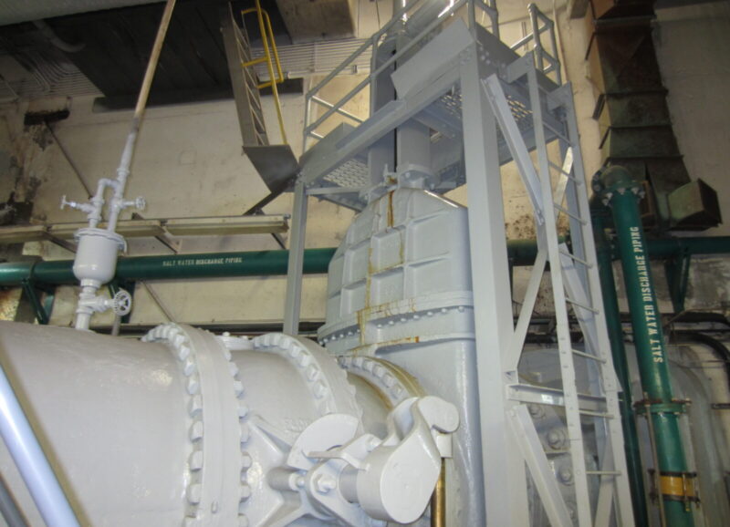 This project involved the recertification of the graving dock caisson which required a complete overhaul by a local ship repair facility. The overhaul included the cleaning, inspection, ultrasonic testing, and the structural repair of the caisson, including interior framing members and outside skin. Additionally, ballast pump check valves were replaced, and the caisson was sandblasted and repainted at the ARCO submarine floating drydock at NBPL. All work was done under the supervision of SWRMC. At the Graving Dock, both 54” discharge pumps were restored by sandblasting and removal of existing lead paint with structural repairs made to the pump housings. Ultrasonic testing was performed and the pumps were repaired/reconstructed with epoxy. Concrete restoration was performed in various locations within the existing graving dock. Miscellaneous electrical and mechanical work were also performed, and many of the existing valves were replaced in the pump room.