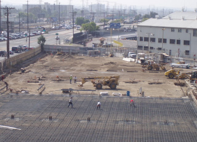 Work included demolition of existing structures including concrete, asphalt, utilities and buildings. Work involved installation of new, heavily reinforced ship block assembly concrete slabs, overhead crane rail, footings and services, heavily reinforced concrete slabs for future blast and paint buildings, hazardous building materials abatement, storm drain, sewer, compressed air, and water utilities, high voltage electrical upgrades and substations, asphalt paving, and concrete paving.