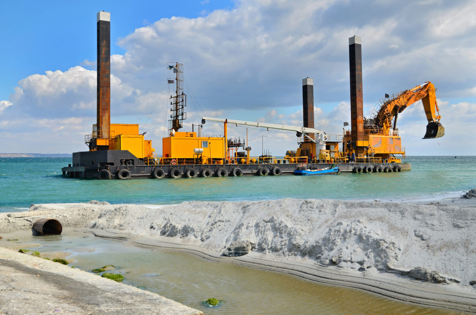 Harsh saltwater environments require specialized marine equipment and corrosion-resistant materials. Coastal projects also depend on strict tidal schedules, often requiring work during low tide late at night.